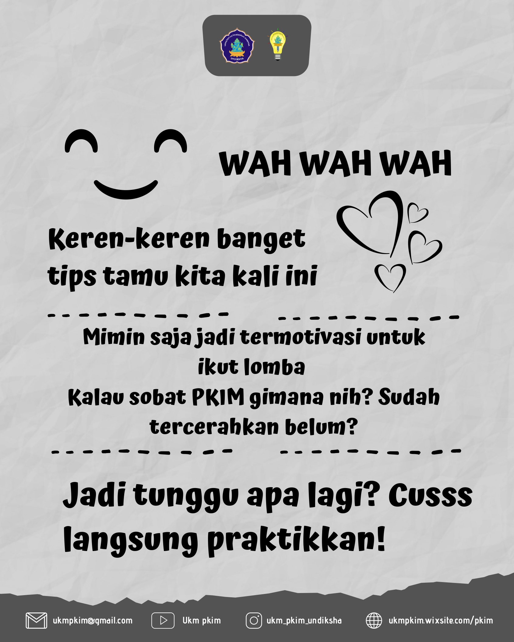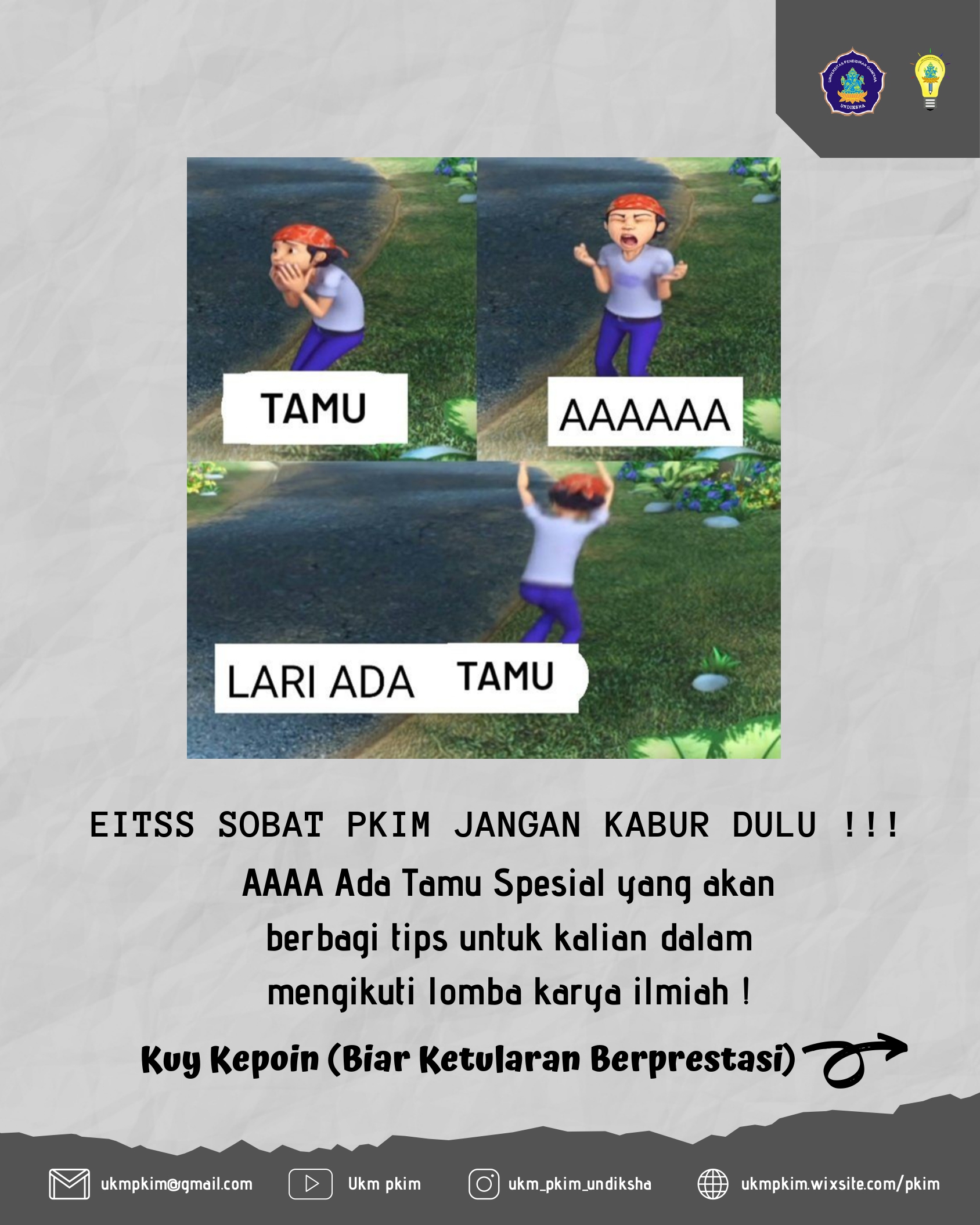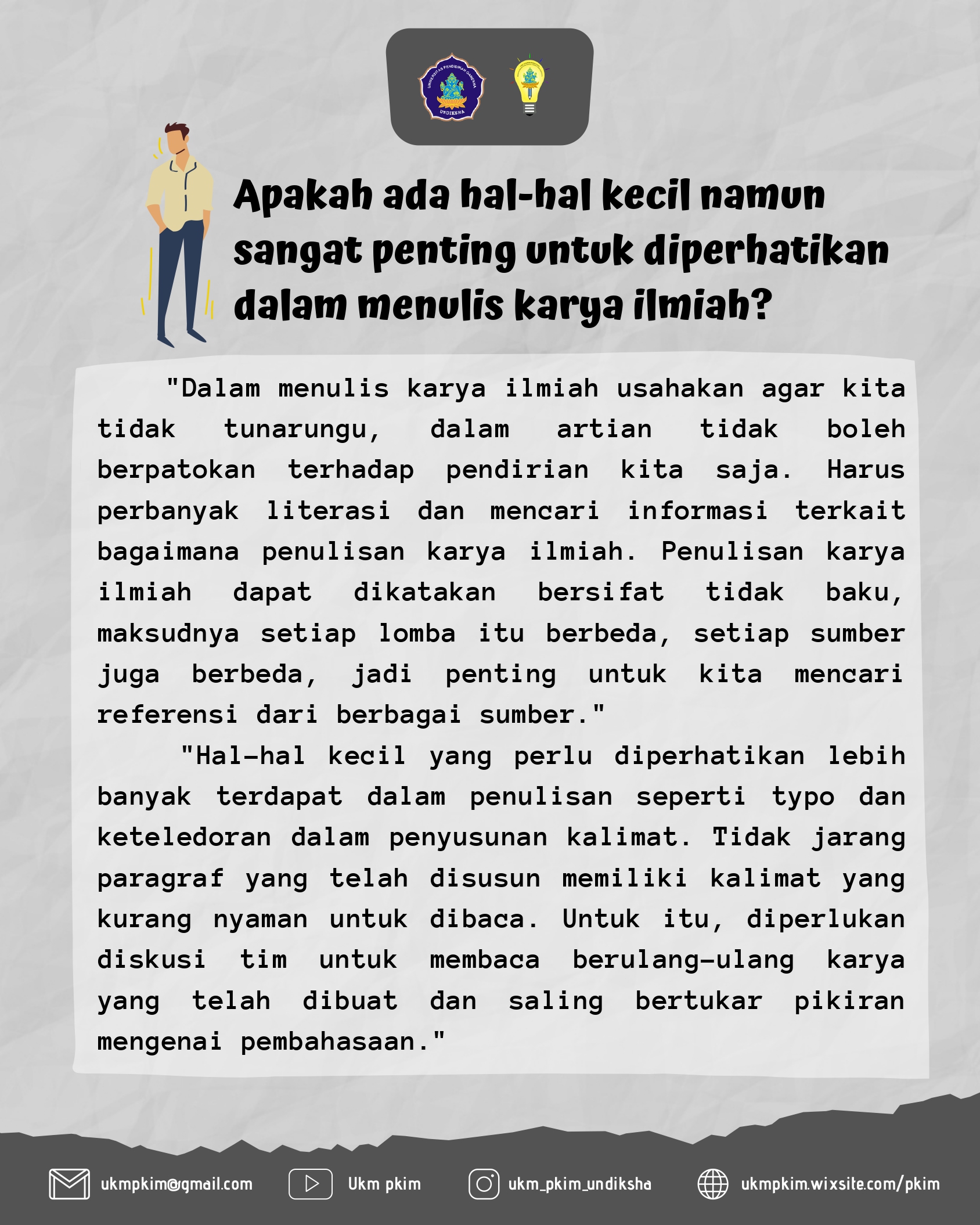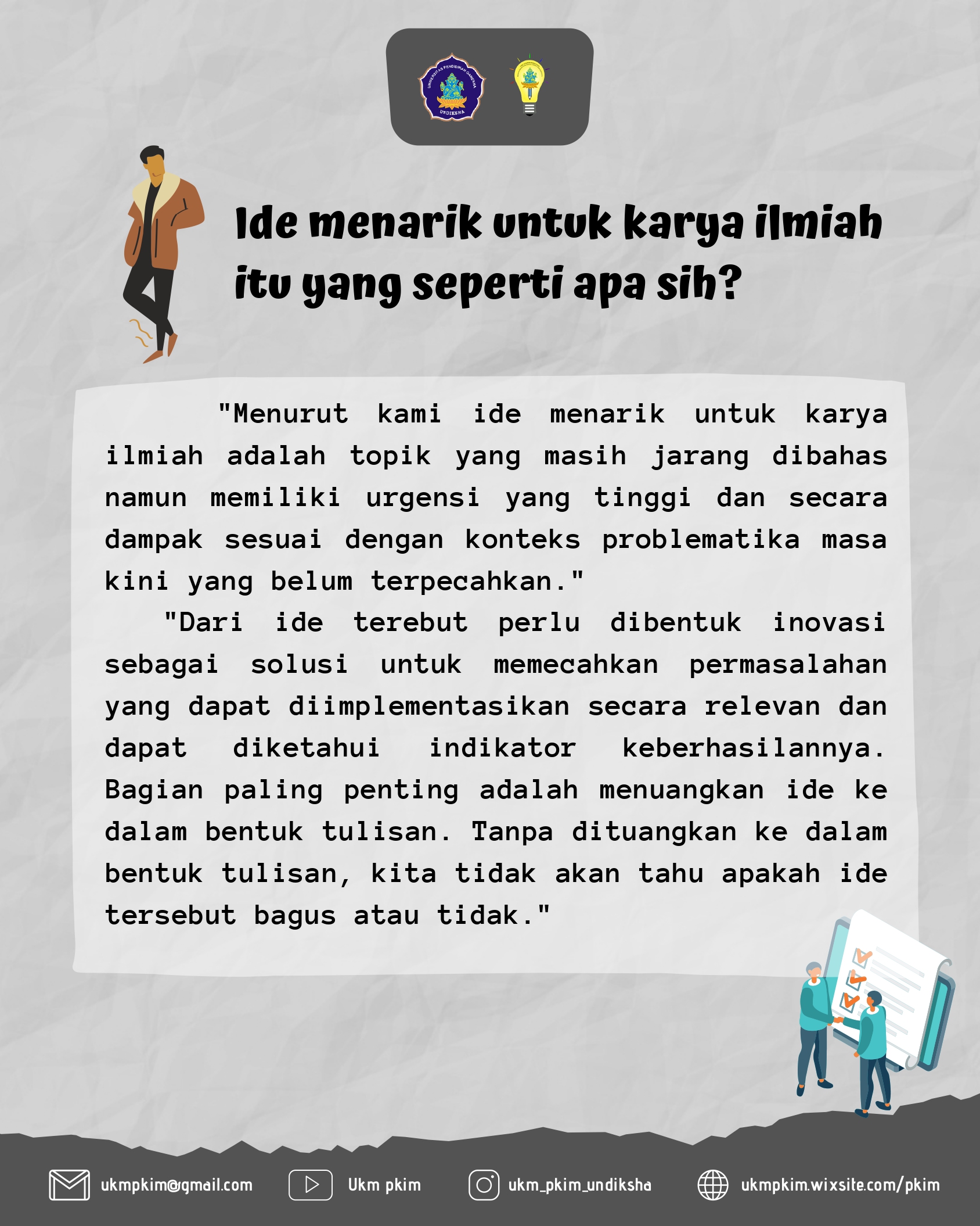 Kali ini UKM PKIM hadir dengan program baru yang akan menambah pengetahuan kalian terkait penulisan karya ilmiah. Kalian penasaran ada informasi apa saja? Yuk simak infografis di atas ya sobat!