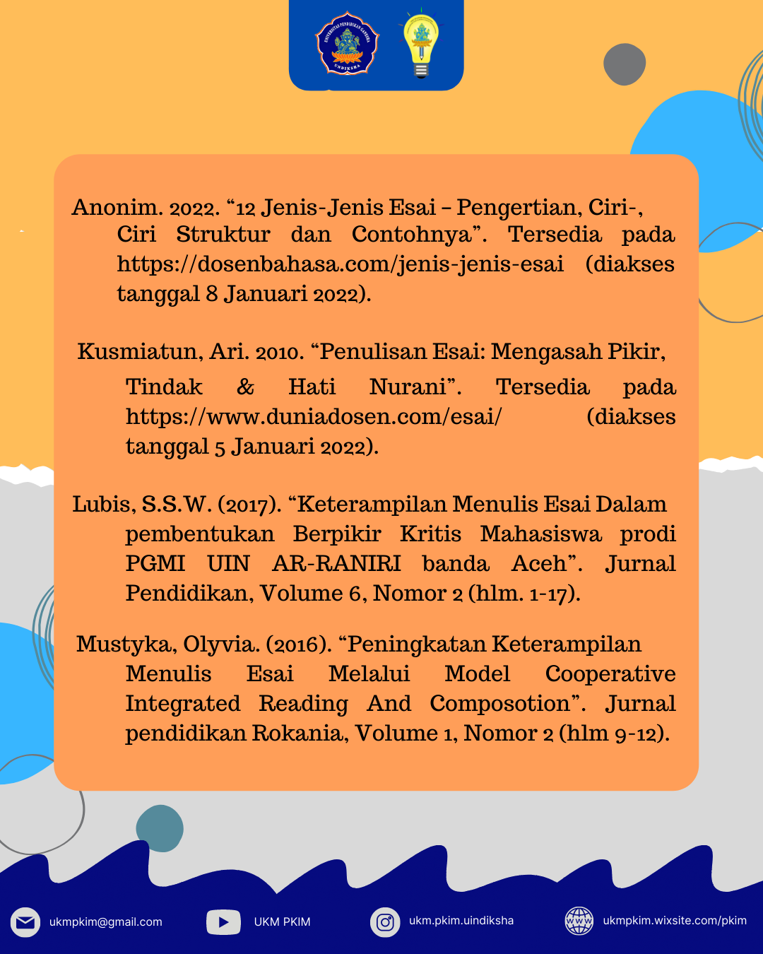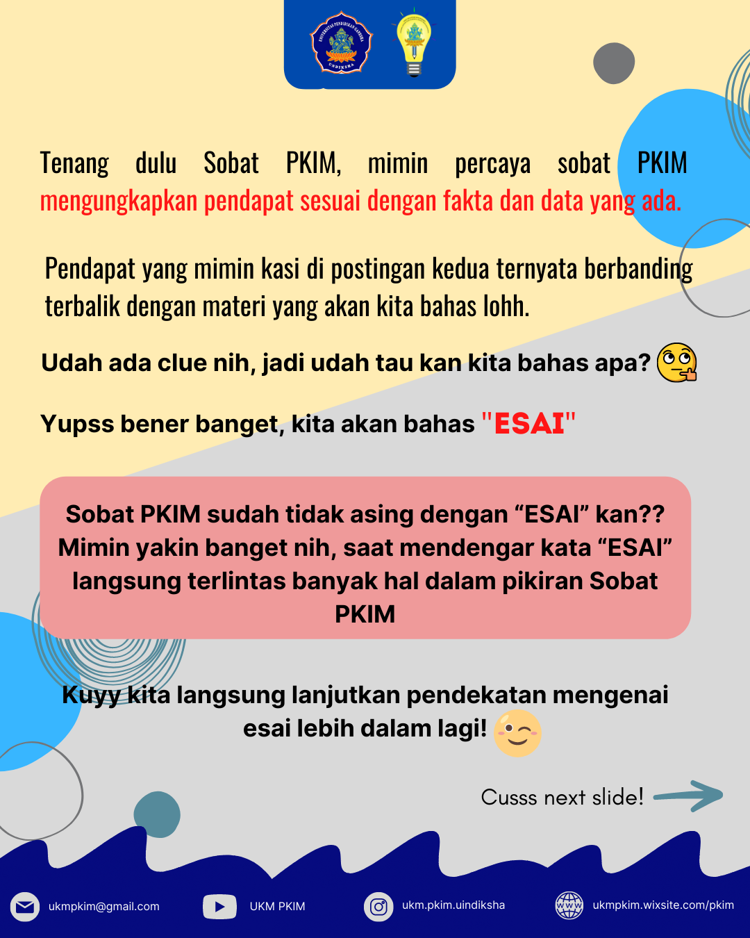 Kali ini UKM PKIM hadir dengan program baru yang akan menambah pengetahuan kalian terkait penulisan karya ilmiah.Kalian penasaran ada informasi apa saja? Yuk simak infografis di atas ya sobat!